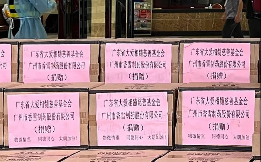 同日下午,广东省大爱相髓慈善基金携手香雪制药向白云区黄石社区卫生服务中心捐赠一批粤抗1号凉茶植物饮料,用实际行动慰问防控一线的医护人员。