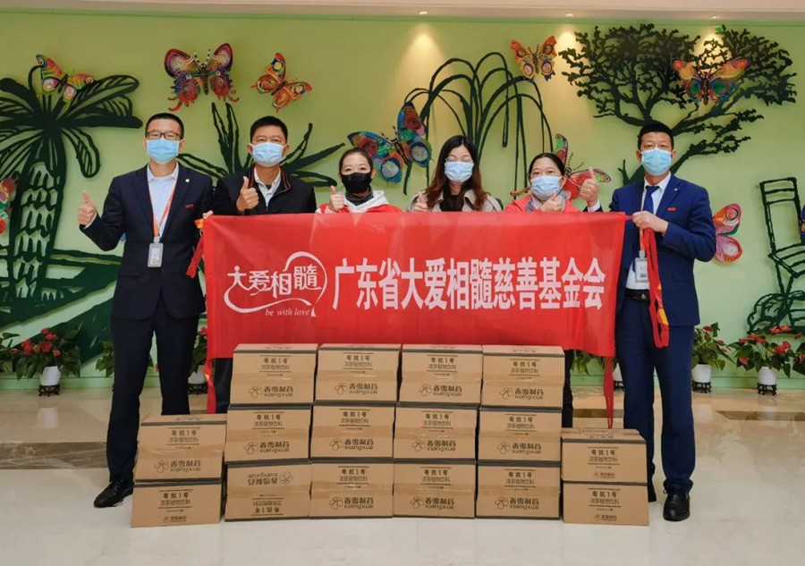近日,广东省大爱相髓慈善基金会携手香雪制药向多个单位和部门捐赠粤抗1号凉茶植物饮料、医用口罩等相关物资,用实际行动表达了对各防控一线人员的支持与敬意。