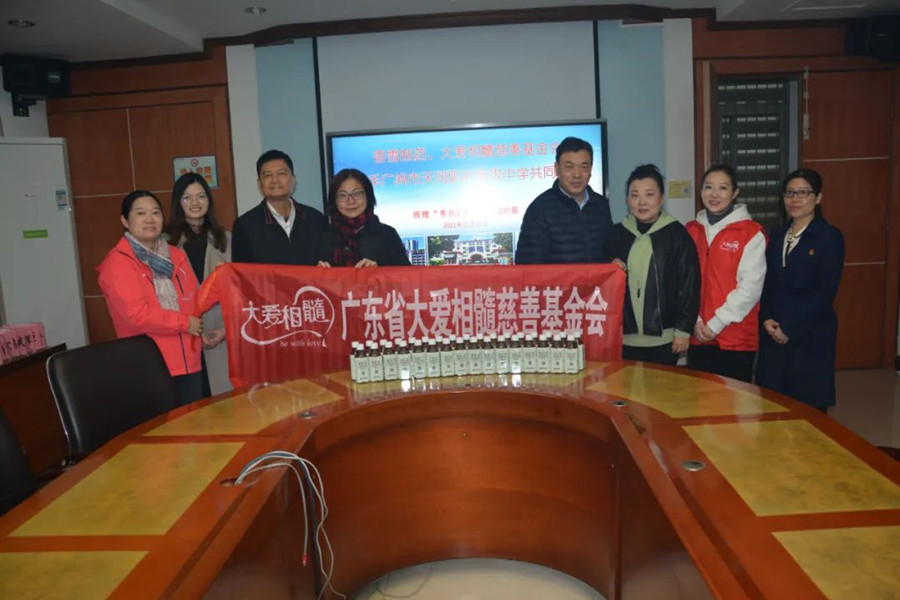 12月21日上午,广东省大爱相髓慈善基金会携手香雪制药向广州市天河职业高级中学捐赠一批粤抗1号凉茶植物饮料,给学校师生送上一份温暖与关怀。