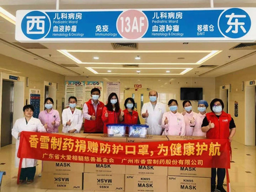 新冠肺炎疫情发生以来,广东省大爱相髓慈善基金会依靠自身力量,坚持开展白血病儿童的扶贫救助工作,及时向正在接受治疗中的贫困白血病儿童发起资助,同时与广州市香雪制药有限公司共同携手,先后多次向有需要的单位,群体,个人捐赠了多批防护物资用于新冠疫情防控。