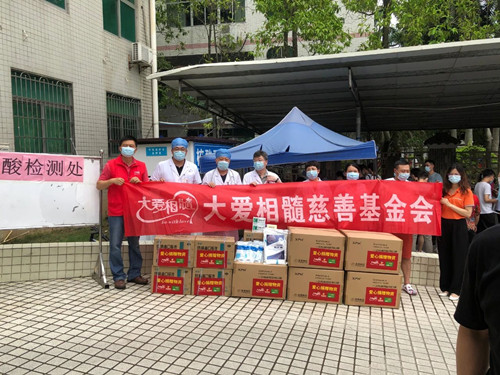 广州疫情反扑来势汹汹, 疫情防控形势严峻。面对突如其来的新冠肺炎疫情,为了支持广州能够更好开展防疫抗疫工作,广东省大爱相髓慈善基金会迅速行动起来。再次携手香雪制药、大参林向广州志愿者驿站、天河区龙洞人民医院、各地区核酸采集点、社区人员、街道办事处等先生后捐赠抗病毒口服液、口罩、粤抗1号、防护服等防疫物资。为一线防疫工作的开展提供支援协助,保障疫情防控工作的有序开展,再次展现大爱和担当。
