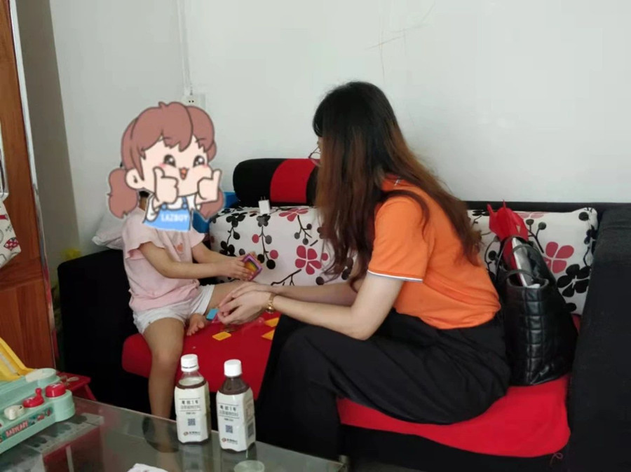 随后,大家来到已经进入大维持治疗阶段的童童小朋友所在的出租房。初次见面,童童并不怕生,她和妈妈一齐热情的招呼我们进屋,童童拿出她平时画的画给大家欣赏,告诉大家她平时喜欢画画,她喜欢爱莎公主,喜欢穿公主裙,还兴高采烈的穿上了她的公主裙给大家看,大家在轻松愉快的环境中进行交谈,陪童童一齐玩游戏,欢笑声在出租房中不断回荡……。