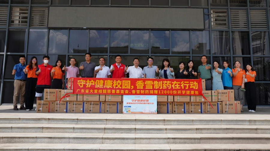 广东省大爱相髓慈善基金会携香雪制药、海王星辰健康药房向广州市天河第一小学捐赠橘红痰咳液、橘红梨膏,守护教师咽喉健康。