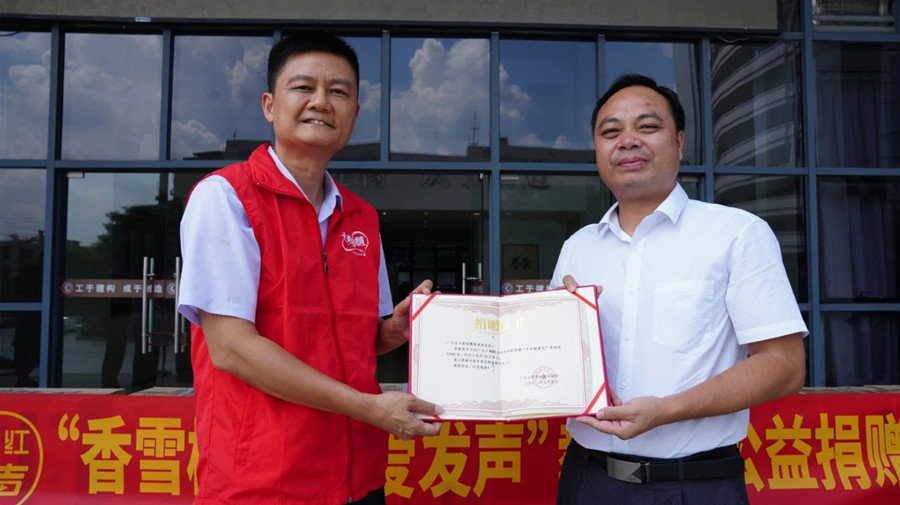 广东省大爱相髓慈善基金会携香雪制药广东惠仁堂大药房向广东工程职业技术学院捐赠橘红痰咳液、橘红梨膏,守护教师咽喉健康。
