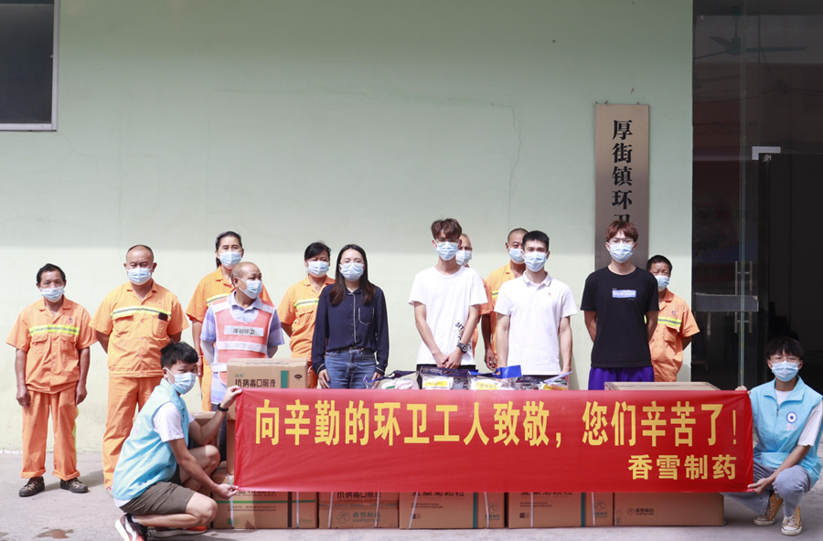 10月12日上午,广东省大爱相髓慈善基金会携手香雪制药联合广东创新信息工程学院深入东莞市厚街镇环卫所和各环卫站点,探望在工作岗位辛勤工作的环卫工人,并给他们送去香雪制药的“健康包”向他们长期以来为保障城市洁净和维护城市形象所做的贡献表示衷心感谢!