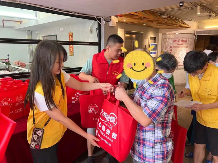 广州石榴仓投资有限公司丁豪先生和立本兰亭荟(广州)商务有限公司牌蕴瑜女士亲自参与本次慰问活动,并与居委会工作人员,爱心志愿者一起走街串巷,上门关心慰问,让群众感受到社会爱心人士的关怀。