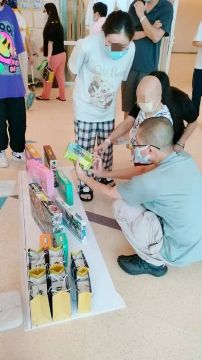 志愿者们根据小朋友的年龄,给孩子们推荐适合的礼物,并现场陪孩子们一齐玩。“哇,是变形金刚!”“有我最喜欢的积木我又可以跟爸爸一起玩积木了!…… 孩子们收到礼物,笑得合不拢嘴。看到展露纯真笑容的孩子们,一旁陪护的家长也露出了舒心的笑,“太有心了,真是谢谢你们了。”