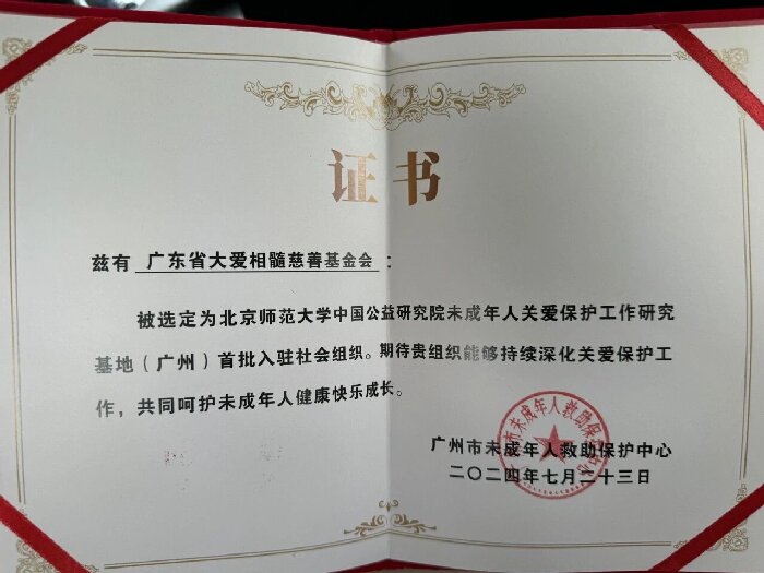 广东省大爱相髓慈善基金会将持续汇聚社会力量,充分调动基金会志愿者的主动性,为广州市未成年人保护工作全力作出贡献,助力国家公益事业高质量发展。