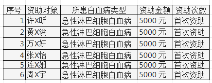 近日,广东省大爱相髓慈善基金会完成新一轮白血病儿童医疗资助审核工作。工作人员严格依据患儿治疗进度、家庭收入状况、治疗费用明细等核心材料,最终确定为6名白血病患儿分别发放5000元首次医疗资助金。目前,资助款项已通过银行转账形式全额拨付至广州市妇女儿童医疗中心,受助儿童可在医院直接使用该笔款项,专款专用保障治疗需求。