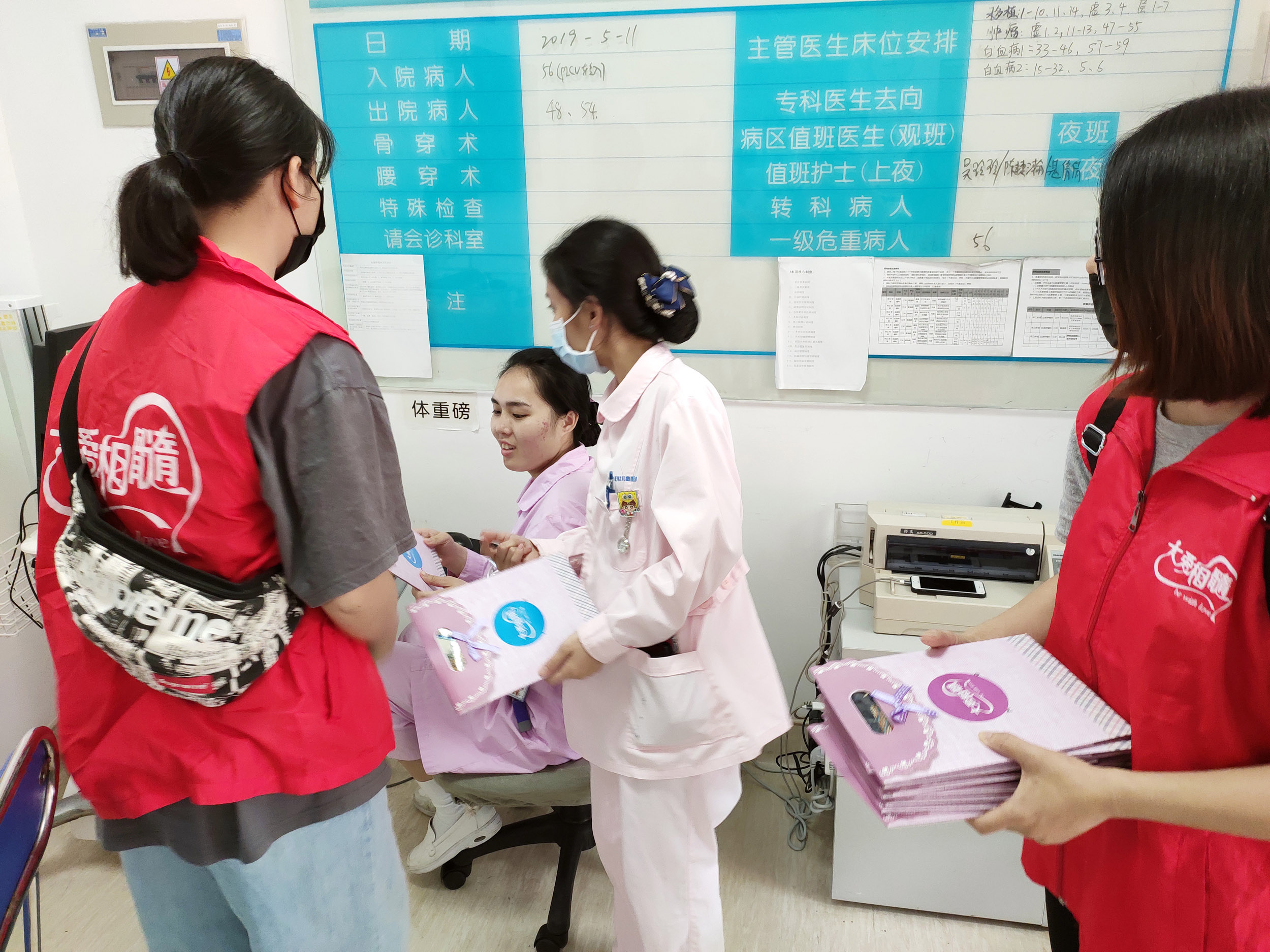 5月12日,不仅仅是国际护士节,也是一年一度的母亲节。今年的护士节恰巧碰上了母亲节,使这个节日变得格外的温馨美好。护士和母亲,都是两个最伟大的角色,为人类带来爱和光芒。在这个充满温情与爱的日子里,大爱相髓慈善基金会志愿者来到广州市妇女儿童医疗中心血液科住院部,为在病房照顾孩子的妈妈们,为在平凡岗位上忙碌着的护士们,提前送上了节日的祝福和衷心的问候。