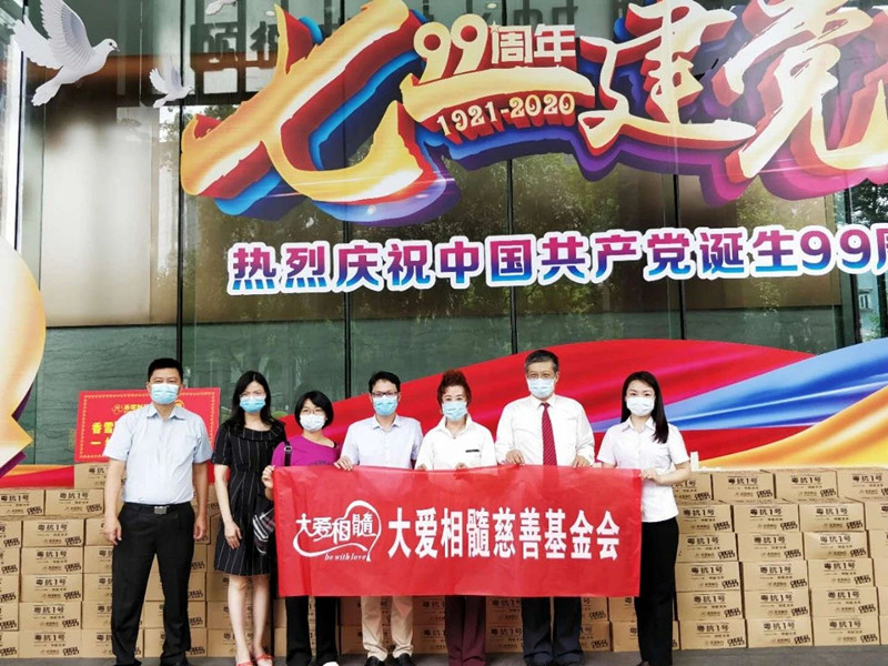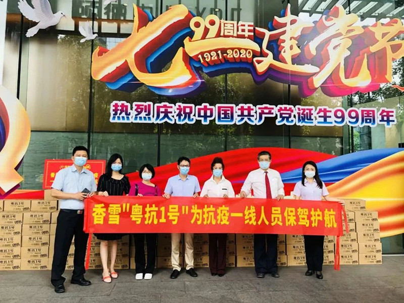 7月9日,大爱相髓慈善基金会携手香雪制药向珠江实业集团市人大物业管理项目部捐赠了200箱“粤抗1号”凉茶,为安全保卫部人员保驾护航。